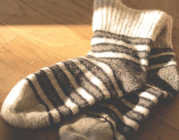 любая пряжа: акрил с добавлением шерсти, можно и чистый акрил, тогда ваши носки буду не такие теплые: