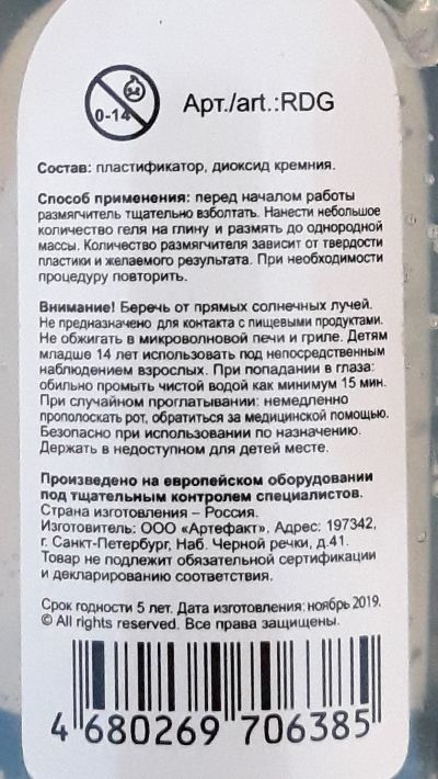 Размягчитель предназначен для облегчения лепки полимерной глины.