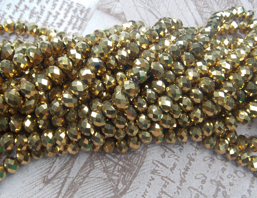 Бусины стеклянные"Рондели" 8х6 мм нить 70 шт цвет №102 золото