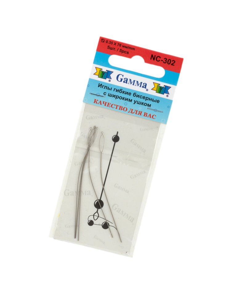 Иглы бисерные гибкие с большим ушком D 0.35мм х 76мм 5шт./уп NC-302 Gamma