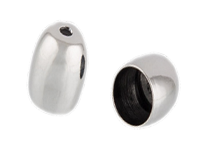 Концевики-шапочки чаще всего используются для толстых шнуров или бисерных жгутов. Фиксация происходит с помощью пина "штифта" с петелькой через отверстие в верхней части.