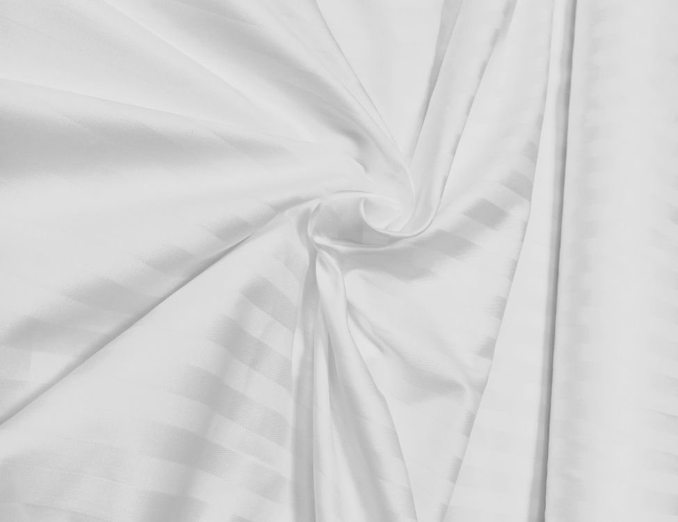 Страйп сатин это разновидность сатина с жаккардовым переплетением и геометрическим рисунком в виде чередующихся матовой и глянцевой полос по длине ткани, Белый в полоску, ширина полосок 1см, Тейковский ХБК