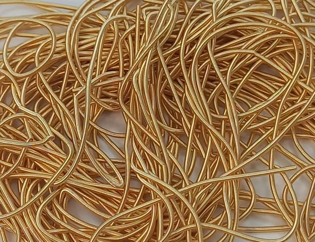 Канитель мягкая предназначена для заполнения поверхности изделий. Расфасована в упаковки от 2 до 3 гр. Длина нитей около 60 на 1 гр в зависимости от диаметра. Цена указанна за упаковку 2,5 гр.