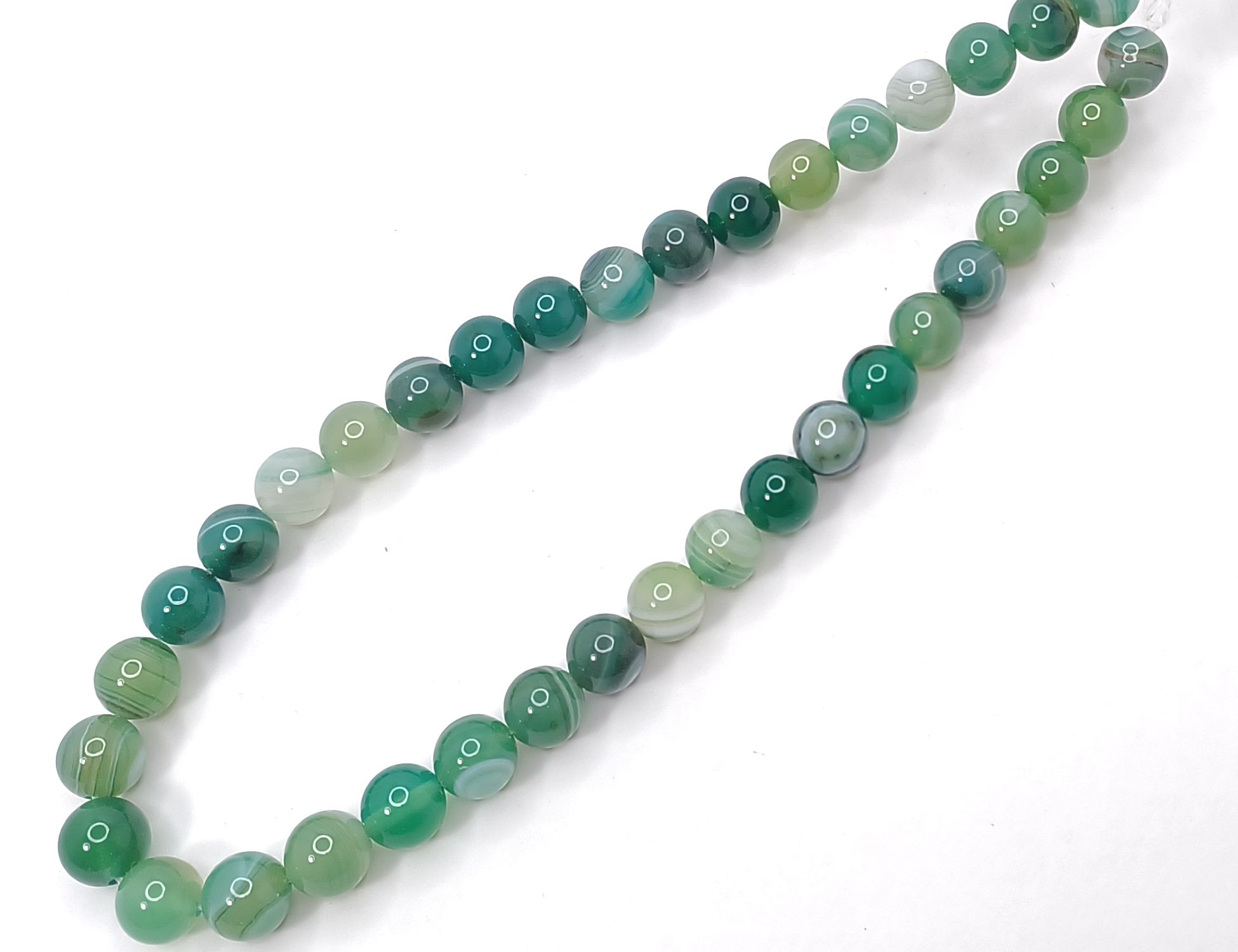Агат тонированный глазковый на нити 10мм светло зеленый